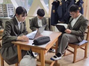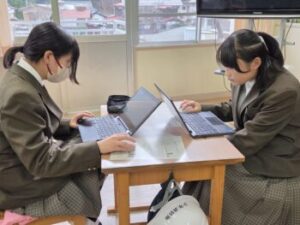 2年生の総合は高校調べ。自分で調べる高校を決め、各校の校章、校訓、部活動、学校の雰囲気などをまとめていました。お互いの発表を聞き、感想や自分の調べた高校と比べて違うところ、興味をもったことをパドレットに打ち込んでいました。来年の進路選択に生かされそうですね(^^)
