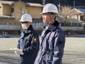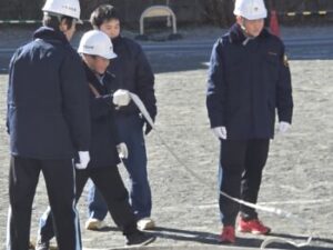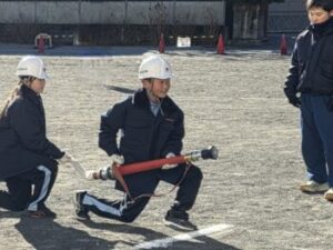 ホースや筒先を持っての移動、それぞれの用具の扱い方など普段はやっていない動きですが、大月消防署の方に丁寧に教えていただき、がんばって覚えています。