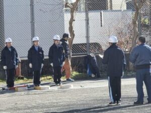 18日(木)には出初め式に向けた練習も行われました。出初め式前の最後の練習。防火服も着て“本番モード”といった感じです。