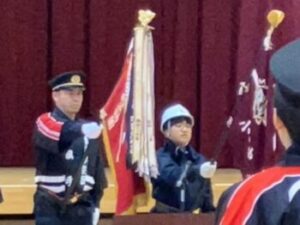 行進と操法は12月に大月消防署の方に丁寧に教えていただき、この日もとても立派な姿を見せてくれました(^^)大変お忙しい中、ご指導いただいた大月消防署の方々に心より感謝申し上げます。ありがとうございました。
