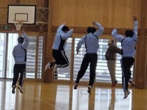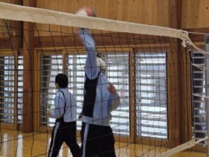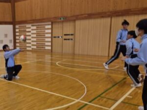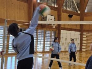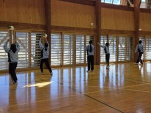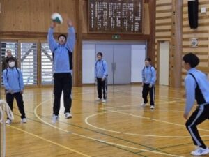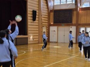 23日(金)はバレーボールの様子をお伝えします。体育館を6周→サーキット終了後、アンダーハンド→オーバーハンドの練習をします。「膝を使って!」との声がかかります。先週見た時よりもみんな格段に上手になっていて驚きました。特に変わったのは「音」。「バチッ」という音が減っていましたね(^^)