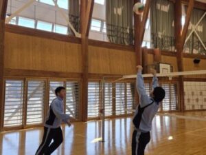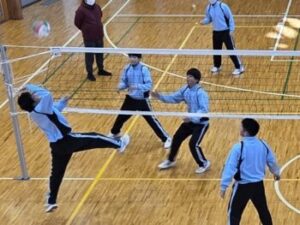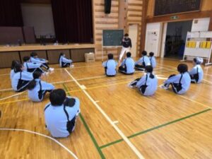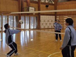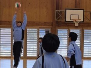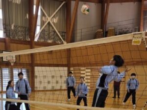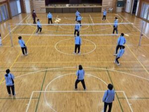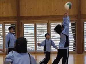 なかなかレシーブが上手くいかず、投げ入れたボールでそのまま得点ということも多々ありましたが、それでもみんなよく繋いでいました。中には壁際まで追いかける姿や突っ込んでポールにぶつかりそうになる姿もありました。小菅中の子たちのよいところは、上手下手に関係なくとにかく全力でやってみようとするところとミスした子がいても決して責めることがないところ。だからこそみんな安心してチャレンジできます(^^)来週はどんな姿が見られるのか楽しみです(^^)/