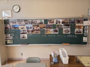1,2校時に3年生は愛校作業をしてくれました。作業後の教室をのぞいてみると、壁には「卒業式まであと○○日」カレンダー。黒板にはこの一年間の記念写真がありました。ロッカーの荷物もなくなっており「いよいよ終わりだな」といった感じがします。