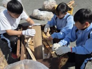 24日(火)には2年生が学年末のレクを行いました。まずは焼き芋。お芋は一度レンジでチンしておくことで早く焼けるとのこと。地域からお借りしたドラム缶コンロで火を燃やすのですが…火をつけるまでにかなり時間がかかりました(^^;)いざ火をつけると…煙がすごい!コンロの周りに少しいただけでも服があっという間に煙のにおいをまとっていました。(きっと今日帰ったら家中が煙のにおいで充満するはず…ぜひ換気を!)