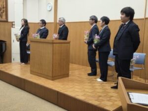 修了式の中で各学年代表から「1年間をふり返って」の発表がありました。1年生からは「太鼓の練習をがんばった」「学習面については日々の取り組みをがんばった」という話がありました。また「今後締太鼓を引っ張っていきたい」「学習面については2年生になって内容も難しくなってくるので何度も復習していきたい」「新1年生の手本となれるように自分たちから進んで取り組んでいきたい」との決意表明もありました。いいですね♪もう既に気持ちは2年生に向かっていますね(^^)がんばれ!