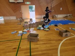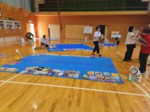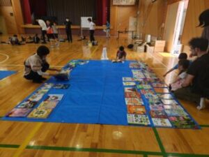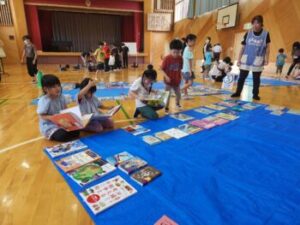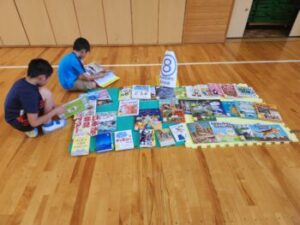 これは甲州市にある天真堂という本屋さんのご厚意で開いてくださいます。約400冊の児童向けの本を体育館いっぱいに並べ,子ども・先生・保護者などが自由に読めるというものです。そしてお気に入りの本をタブレットを使い投票し,人気の本の順位を決めます。もっといいのは,自分が選んだ本は基本的に学校図書で購入してくれるという流れになっていることです。始めるまでの準備は大変ですが,皆さんの協力のもとで準備がすすめられました。