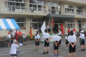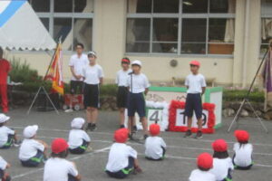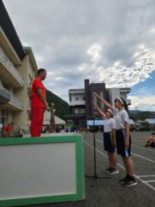 6年生と中学3年生の代表からの感想発表です。6年生は小学生としては最後の体育祭となりました。中学3年生は9年間の思い出が詰まっていることでしょう。いつまでも憶えていてほしいですね。お疲れ様でした。