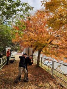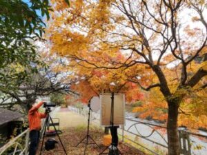 そんな中,6年生は卒業アルバムの個人写真を撮影に,徒歩で小菅川沿いの紅葉スポットに足を運びました。こんなきれいなところで顔写真を撮影していただけるなんて小菅だからできることです。担任の先生も含めいい表情でした。