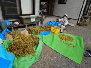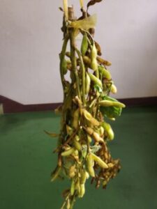 その帰りに児童のおばあちゃんが枝豆(大豆)を収穫し,味噌造りをするための下準備を始めていました。「一人じゃ大変だから,子どもたちに手伝ってほしいねえ」と。ちょうど3年生が国語の学習で『姿を変える大豆』という説明文の学習をしています。大豆が姿を変えていく初歩的な過程を体験するにはピッタリだと思いますということで担任に相談をしました。今日のところはお裾分けをしていただき,学校で乾燥させて様子をみることにしました。