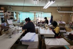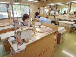 各々が任された製品の仕上げをしていました。オーダーメイドもあるそうで,1枚?万円のエプロンの製造をしている方もいました。どんな方が身につけるのでしょうか?