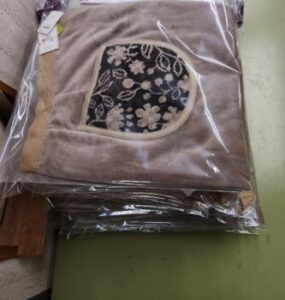 縁がつくとこんな感じです。高級な品物です。縫製する時は当然のことながらかなり慎重に行い,不良品が出ないように最善の注意を払っているそうです。まさに職人技!お見事です。