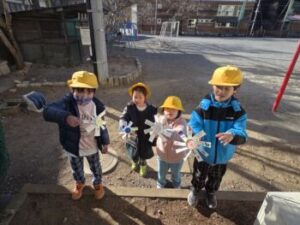 一年生は手作り風車を作り迎える準備でしょうか?よく回っていました。「今日は頼むよ」というと「大丈夫!」という返事がきました。先輩になるというのがわかっているかな?頑張れよ先輩たち!