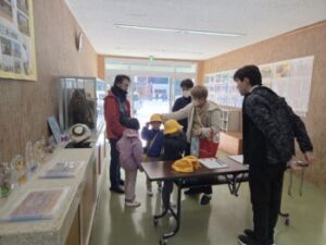今度の入学生は8名。小菅でいうと久々に多い数です。近年では平成30年度の9名以来の数でとてもうれしいです。他の転入生もあることから,令和8年度の全校児童は31名になります。子どもが増えることで活気が出ますね。この写真は黄色い帽子のサイズ合わせです。数年前から,男女問わずキャップ型でもハット型でもOKになりました。皆ニコニコしていました。出迎える先生も自然とニコニコになります。