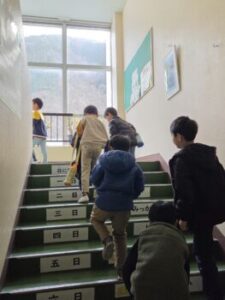 終了後は保護者の待つ2階ホールへ誘導してくれました。やはり下の子が入るというのは上の子たちにいい影響を与えますね。たくましくもほほえましい光景でした。ありがとう1,2年生❗