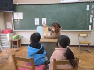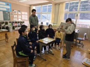 2年生には3年生の先生です。本は、パンやのろくちゃんでした。