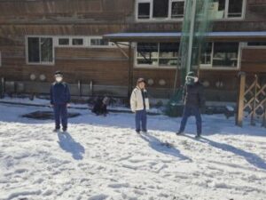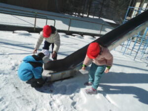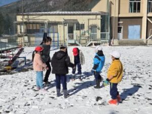 6年生は家庭科の授業の一環で「ニコニコ作戦」ということで保育所に行って園児と共に雪遊びをしました。こちらも大喜びです。