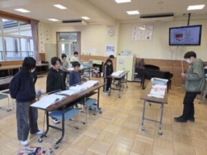 3・4年生は賑やかな音楽の授業でした。カツ丼♪牛丼♫うな丼♬ なんのこっちゃ?と思い覗いてみると,『どんぶりパーティー』という歌を披露してくれました。数々のどんぶり名が出てきて,4つのどんぶりグループになり,群読のような感じで,かけあいの合唱でした。実に楽しいと思いきや,違うバージョンもあるとのこと。『ほかほかパン屋さん』ということで,メロンパン♬ぶどうパン♪あんパン♫などなどこちらも数々のパンが出てきました。お腹が空く楽しい歌です。6時間目の授業でよかったです。