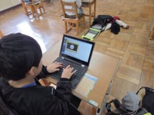 1年生は5時間なので既に外へ出て遊んでいました。2年生はタイピングの練習をしていました。ローマ字入力を身につけ,かなりすらすらとできるようになっていました。端末機器を文房具のように使うこと!すっかり上手になりましたね。