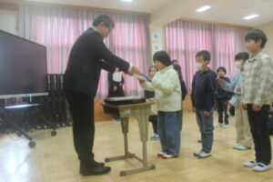 令和7年度の授業日数は199日(一年生は198日)。このうち皆勤だった児童が2名いました!素晴らしいことですね。栄誉を皆で賞賛しました!パチパチパチ!!!