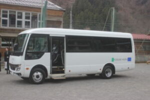 中休みには,新車のスクールバスお披露目式が校庭で行われました。小菅のロゴが入った爽やかな白色のバスです。これからお世話になります。これまでのバスにも大変お世話になりました。ありがとうございました。
