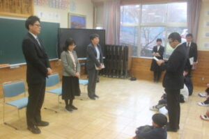 異動される先生方の紹介を校長が行った後に,児童会長とPTA会長から,お礼と労いの言葉がありました。子どもたち,そして学校のためにご尽力いただきありがとうございました。新任校でも益々のご活躍を祈念いたします。